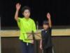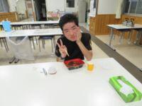 終わりのあいさつをしている舎生 「みなさん、たくさん食べましたか?お腹は痛くないですか?