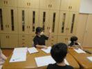 舎生が投票用紙をみているところ