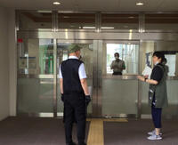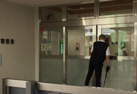 屋外の避難階段を下りているところ