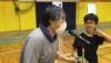 網の上の火柱に釘付けの舎生2人